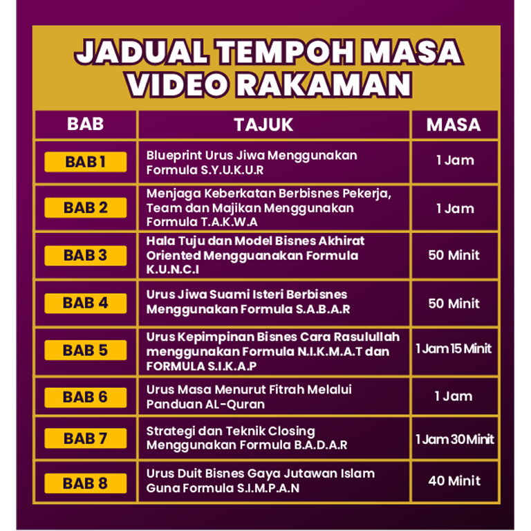 Dengan RM39, anda boleh langgan 1 bab video rakaman pilihan anda. Tapi kalau nak LEBIH JIMAT, langgan terus 8 bab video rakaman dengan harga RM259 sahaja (berbanding RM312 kalau beli satu persatu).
